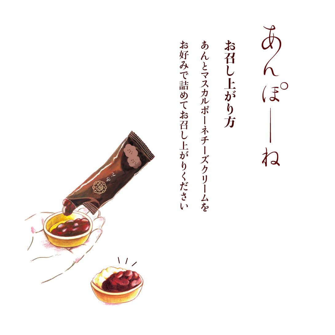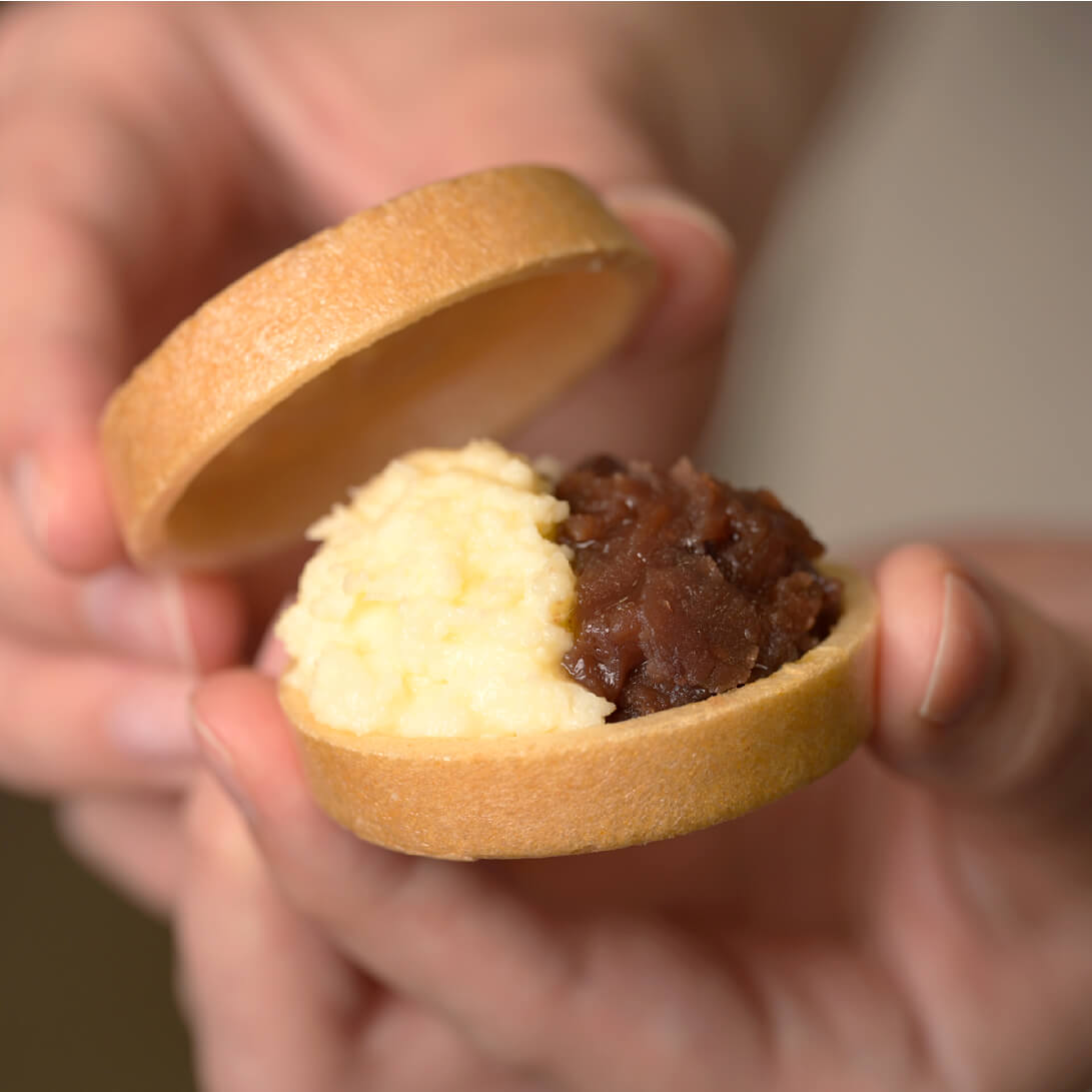 十勝産小豆をじっくり炊きあげたつぶあんと、マスカルポーネチーズを使用した自家製クリームを、お好みでサンドしてどうぞ。