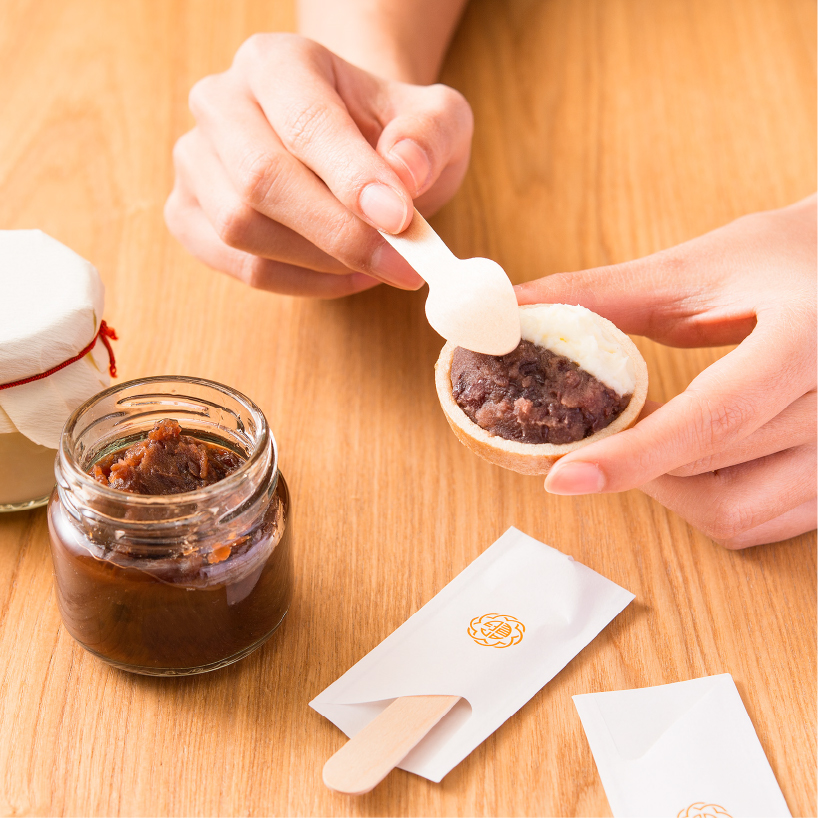 十勝産小豆をじっくり炊きあげたつぶあんと、マスカルポーネチーズを使用した自家製クリームを、お好みでサンドしてお召し上がりください。